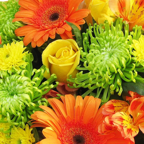 Яркая, насыщенная страстью и светом цветовая палитра из гербер, роз и хризантем, великолепно подойдет для подарка, как мужчине, так и женщине, когда чувства осмысленны, проверены и так же свежи, как в первый день! Сделает самый обычный день лучшим!