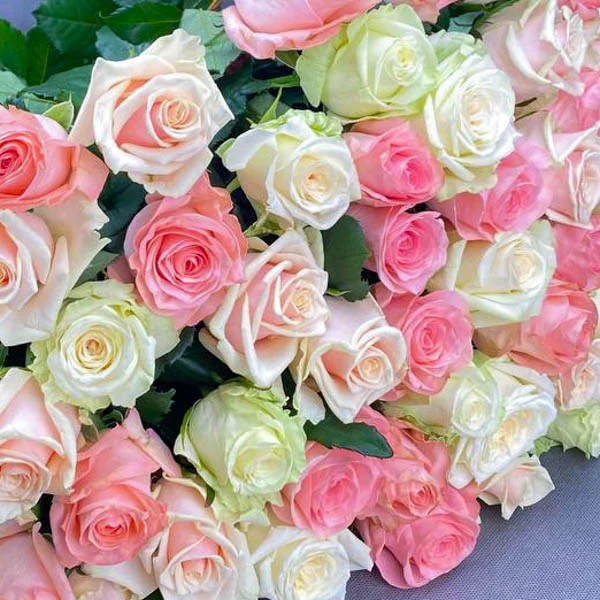 Аромат нежности – букет из белых и розовых роз (50-60 см)